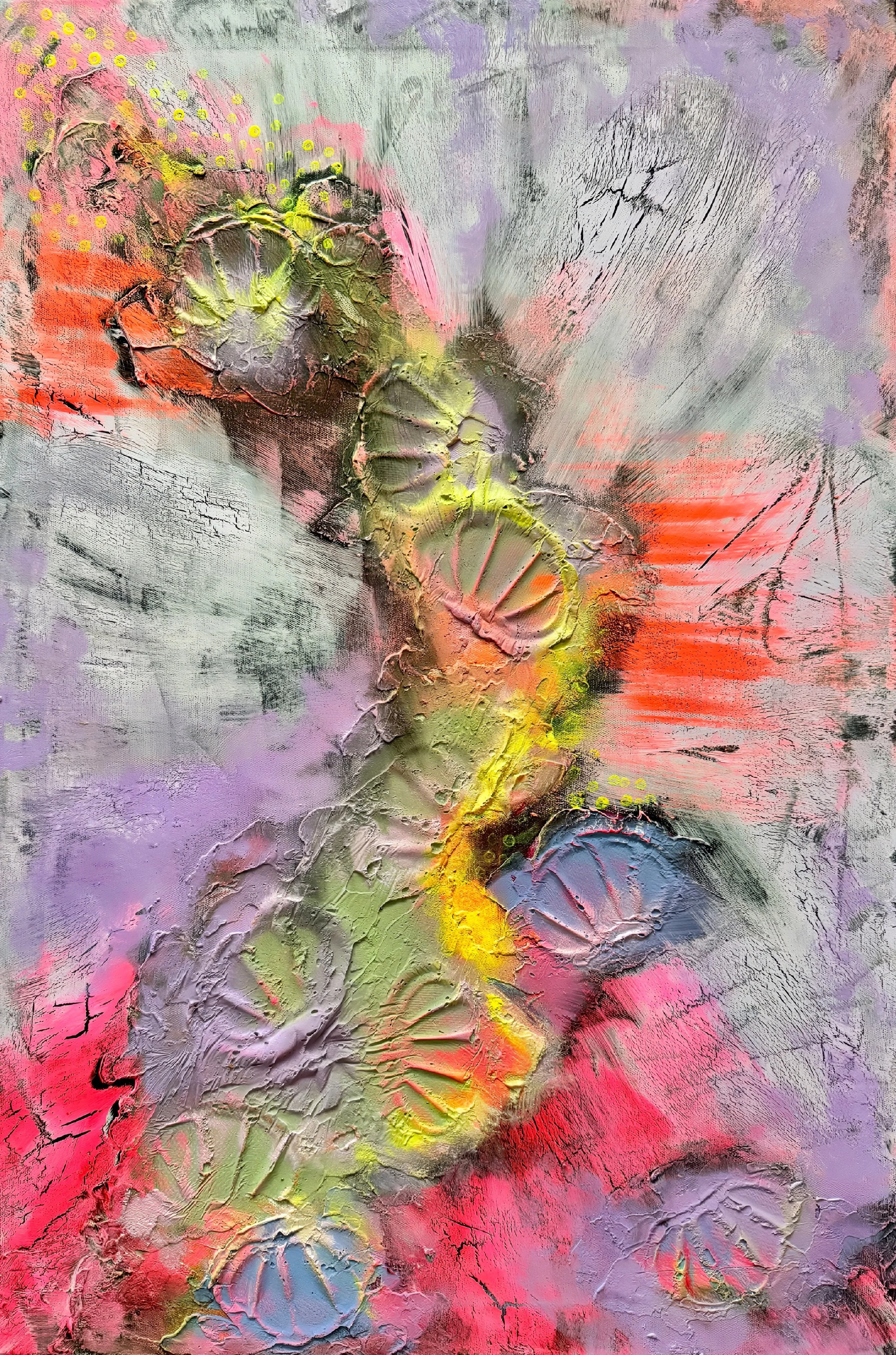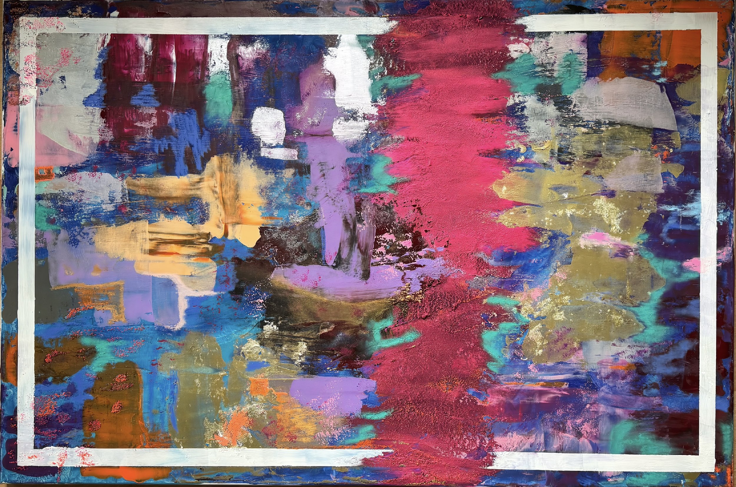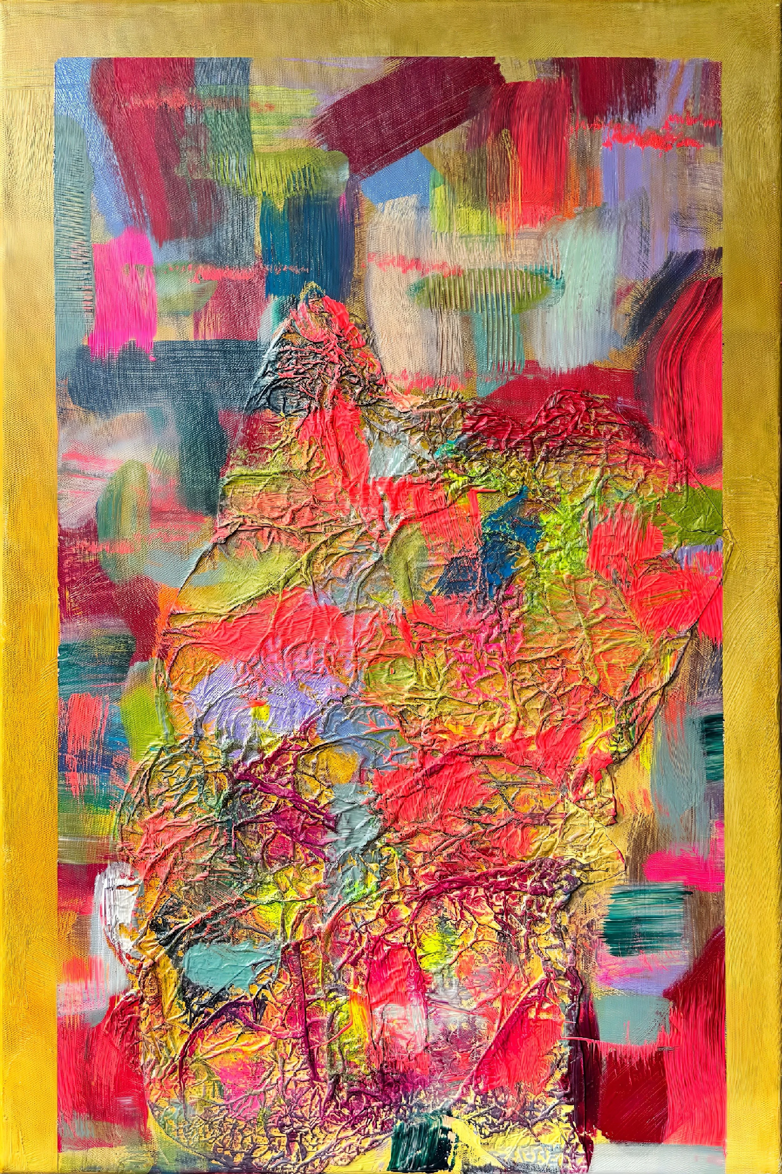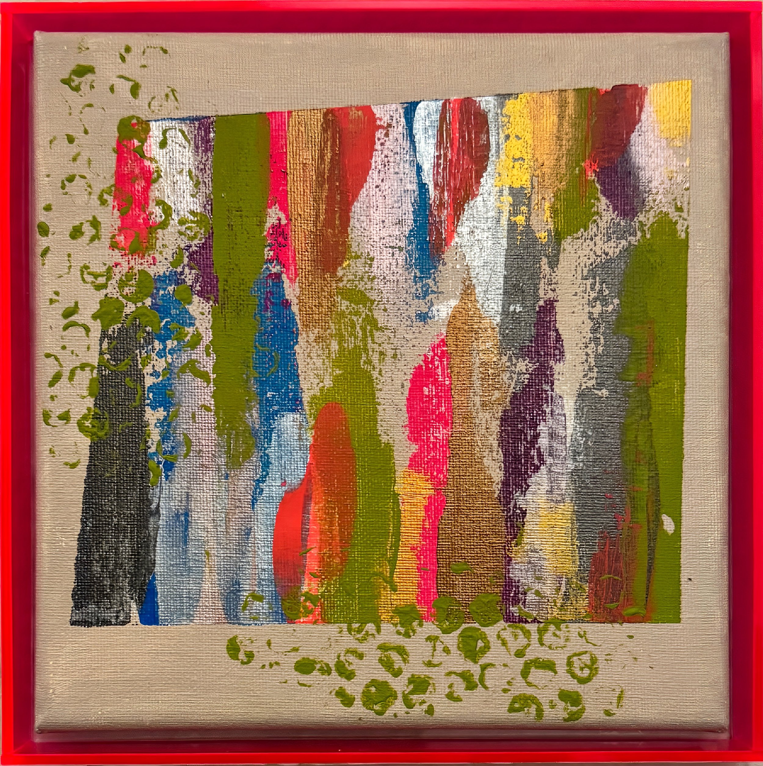 Dieses Werk ist eingefasst in einem neonroten Schattenfugenrahmen aus Acryl.