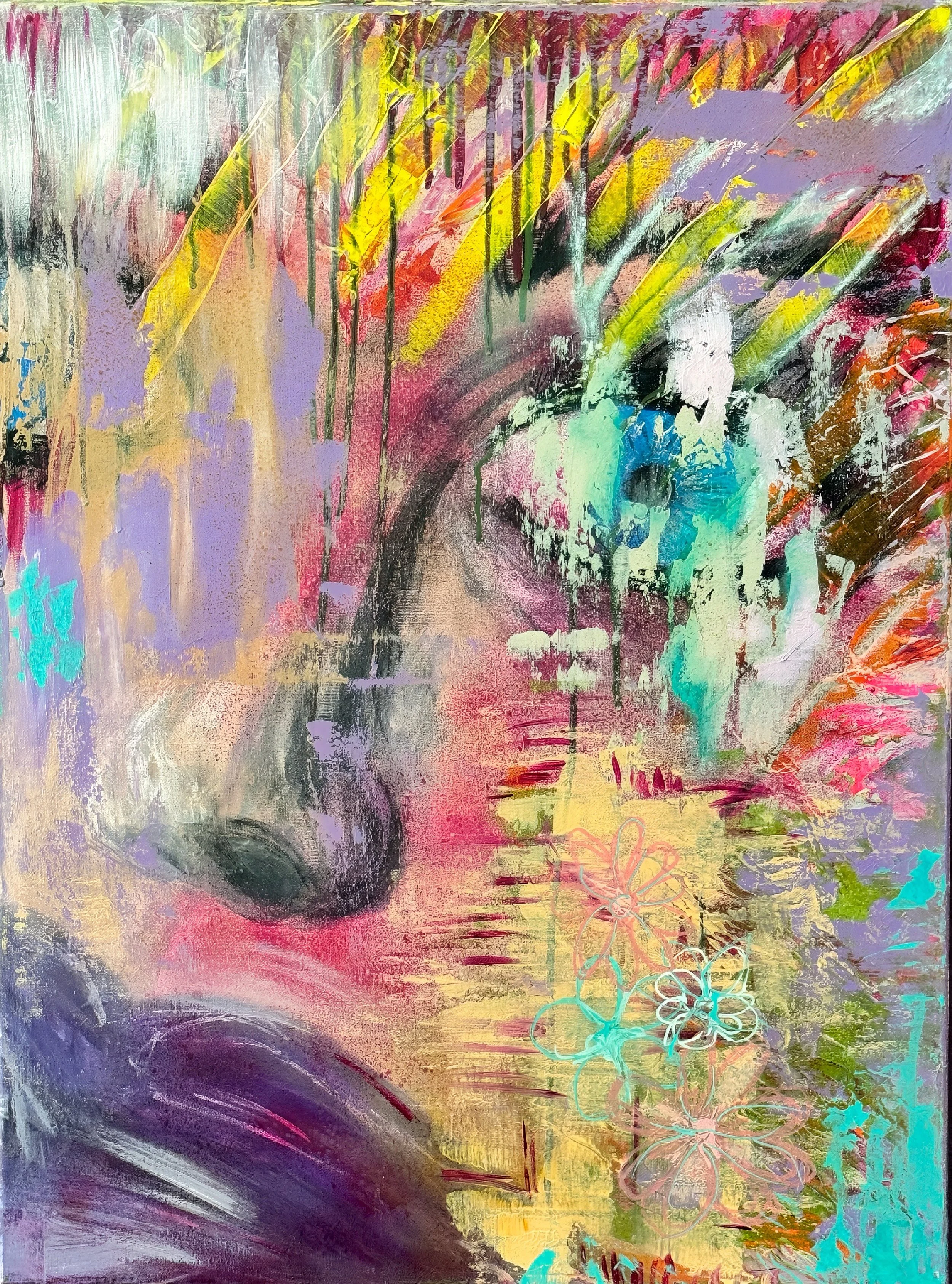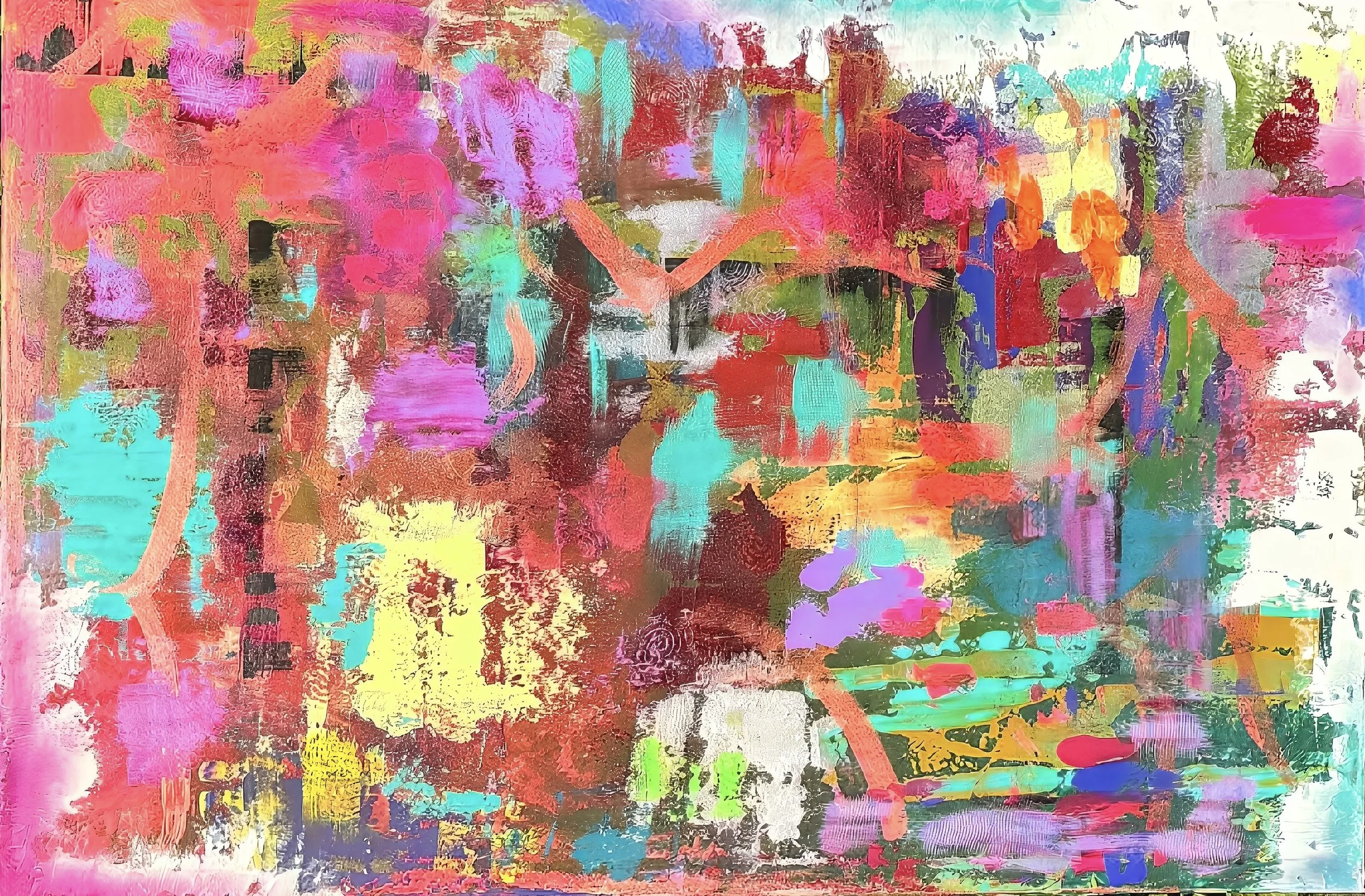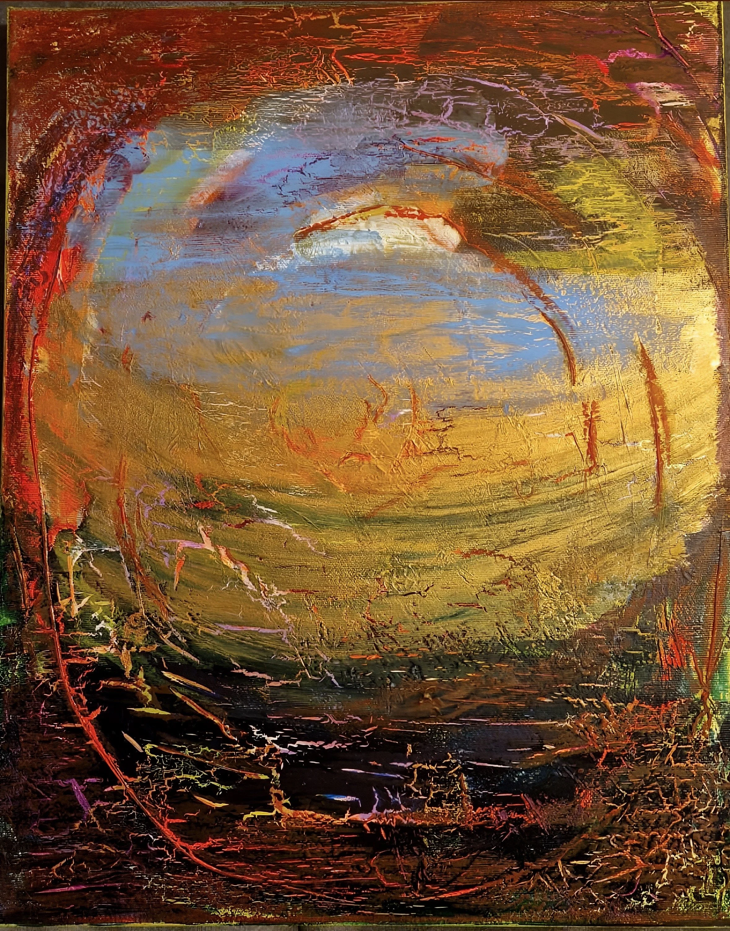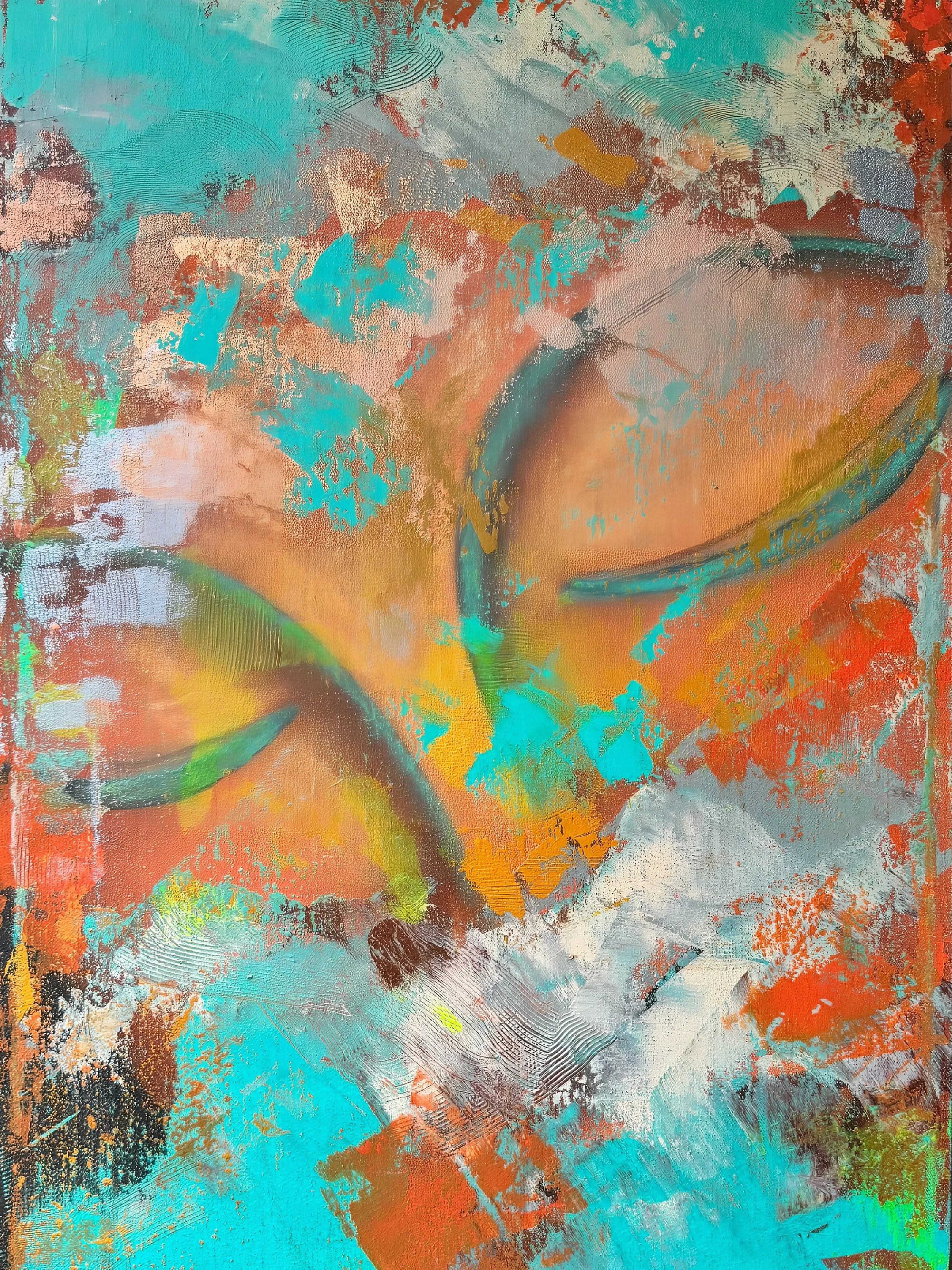 Dieses Werk ist eingefasst in einem neonroten Schattenfugenrahmen aus Acryl.